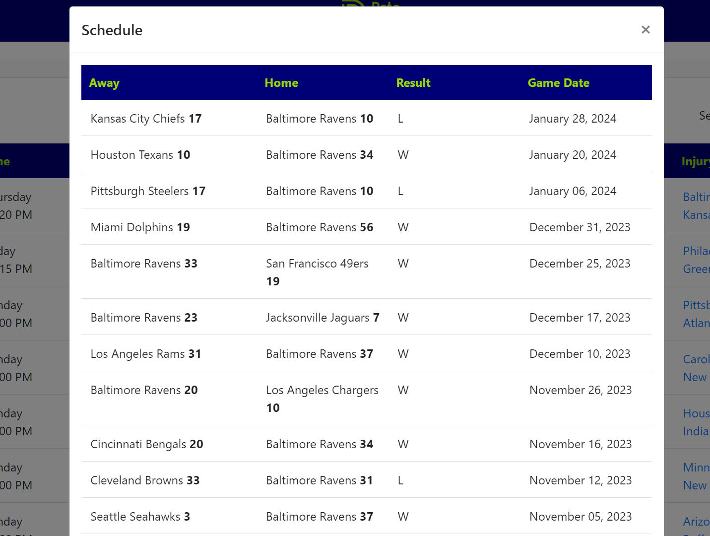 Schedules: Explore every team's schedule in detail, all without ever leaving the page.